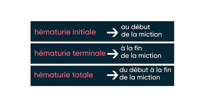 Il est important de noter à quel moment de la miction se manisfeste le saignement, car le savoir, permet d’orienter le diagnostic