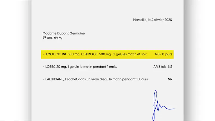 Chaque jour, 4 millions de Français passent la porte d’une pharmacie, pour la plupart avec une prescription. Mais une ordonnance, c’est presque une langue à part. Au début aucun problème, il y a le nom du médecin, son numéro d’identification, la date, le nom et le prénom du patient, son poids, notamment si c'est un enfant et la signature du médecin, sinon l’ordonnance n’est pas valable.