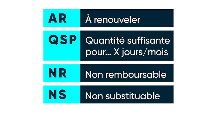 Dernier élément, le prescripteur doit préciser à chaque ligne la dose, le moment des prises et la durée du traitement. Ex : 1 sachet dans un verre d’eau le matin pendant 10 jours.