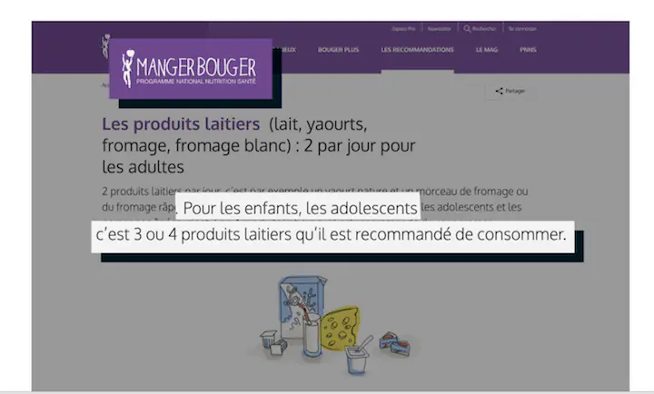 Le PNNS recommande 3 à 4 produits laitiers par jour