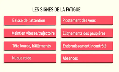 Si vous êtes moins réactifs face à la signalisation, que vous avez des difficultés à maintenir une vitesse et une trajectoire constantes, ou pire que vous avez des absences, des assoupissements… levez le pied et arrêtez-vous sur l’aire de repos la plus proche !