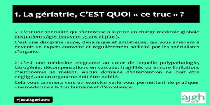 Au programme de l'internat : une prise en charge globale des personnes âgées, de la polypathologie, quatre ans de formation, des horaires compatibles avec une vie personnelle riche et un crédo : "vous pourriez devenir le Dr. House du sujet âgé"