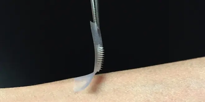 Pas plus gros qu'une pièce de 10 centimes, ce patch cutané remplacera peut-être un jour les injections quotidiennes d'insuline pour les diabétiques. Il est recouvert de plus d'une centaine de micro-aiguilles, régulant automatiquement la libération d'insuline en fonction du taux de sucre dans le sang.