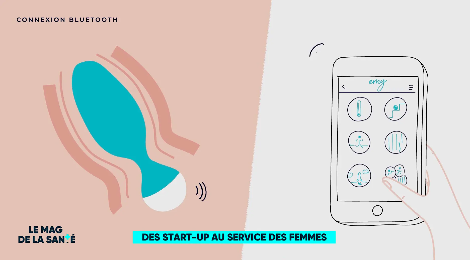 La sonde EMY est un dispositif médical breveté, composé d'une sonde vaginale dotée de capteurs de force. Elle fonctionne avec une application pour téléphone qui propose des jeux afin de rééduquer son périnée par contractions volontaires (contrairement à l'électrostimulation), à son rythme, en toute décontraction et en visualisant le résultat de ses efforts.