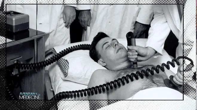 Années 60, aux Etats-Unis, le Dr William Kouwenhoven étudie le rythme cardiaque d'un chien quand, d'un seul coup, l'animal fait un arrêt cardiaque. Kouwenhoven court chercher un défibrillateur électrique en ordonnant à son assistant (intuition de génie !) de comprimer le thorax du chien dans un mouvement régulier en attendant son retour. Le massage cardiaque était né.