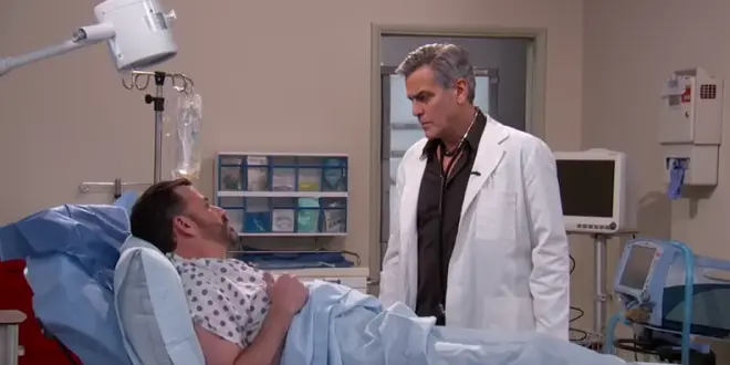 Pour la première fois, les deux docteurs les plus connus de la télévision se rencontrent dans une parodie d'Urgences (E.R en anglais). C'est Jimmy Kimmel qui joue le rôle du malade allongé dans un lit d'hôpital, soigné par le Dr Ross, alias George Clooney.
