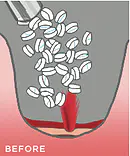Les éponges, rapidement insérées dans la plaie à l'aide d'une grosse seringue à piston, gonflent et remplissent la cavité, créeant une barrière physique pour arrêter le sang. Le nombre d'éponges nécessaires pour le contrôle de l'hémorragie variera en fonction de la taille et de la profondeur de la blessure. L'ensemble des mini-éponges contenues dans une seringue peut absorber environ 50 centilitres de sang. Trois lots d'éponges peuvent être insérés, au maximum.