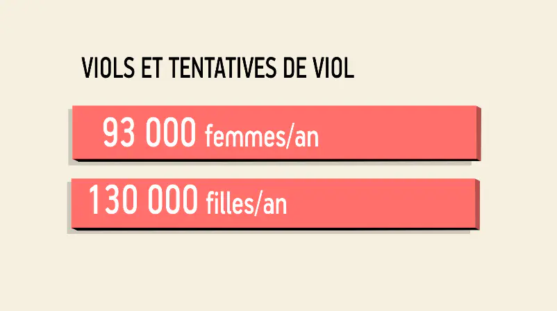 Le constat est implacable. En 2018, les violences sexuelles sont toujours aussi fréquentes et répandues, elles touchent plus de 20% des femmes, et ce sont les filles et les femmes les plus jeunes et les plus vulnérables qui les subissent le plus (femmes handicapées, discriminées, sans abri, migrantes, personnes prostituées). Chaque année, 93.000 femmes et 130.000 filles subissent des viols et des tentatives de viols, dans plus de 90% des cas par des proches.