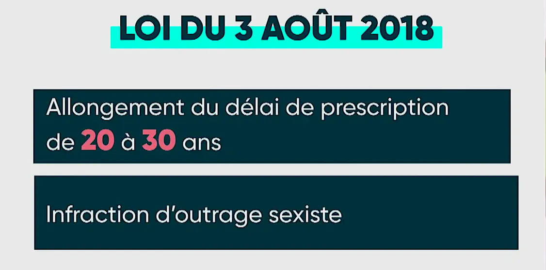 Le mouvement #MeToo a permis de libérer la parole des victimes et de favoriser une prise de conscience collective. Le nombre de plaintes déposées pour violences sexuelles a explosé en France en un an (+ 23%). Les victimes osent parler et portent plainte parfois même pour des faits prescrits. Ce mouvement a aussi permis de faire changer la loi. Il existe désormais une nouvelle législation en France pour renforcer la lutte contre les violences sexuelles et sexistes. Cette loi a été adoptée en août 2018 avec des avancées notables :