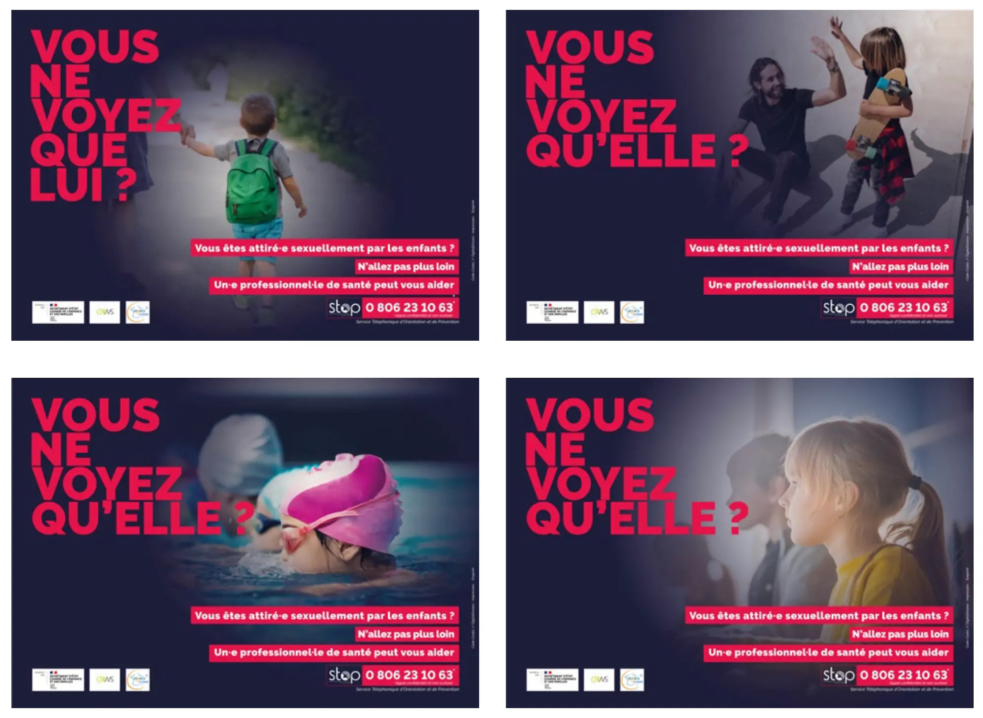 0 806 23 10 63 c'est le nouveau numéro dédié pour aider à la prise en charge des personnes attirées sexuellement par les enfants. Une campagne d’affichage à destination des pédophiles a été lancée début février à l’échelle nationale.