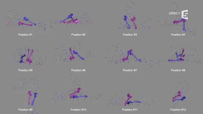 Tout dépend aussi si vous êtes un homme ou une femme. Des chercheurs suisses ont mené en 2013 une étude avec deux volontaires homme et femme, non dotés de prothèses, qui ont simulé douze positions sexuelles. En rose sur la photo ci-dessous, le sujet féminin et en bleu le sujet masculin. Leurs mouvements ont été capturés et le positionnement de leurs articulations a été clairement visualisé grâce à l'IRM. L'équipe a ensuite reconstitué des modèles de prothèses de hanche en 3D.