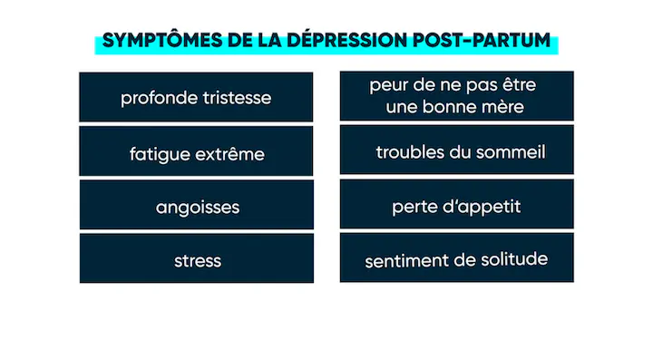 La dépression post-partum est une maladie qui touche entre 10 et 20% des mères. Elle nécessite un suivi médical car elle peut avoir des conséquences sur le lien affectif avec le bébé et dans la relation avec le conjoint ou la conjointe. Sans prise en charge, elle conduit parfois au suicide ou à l’infanticide.