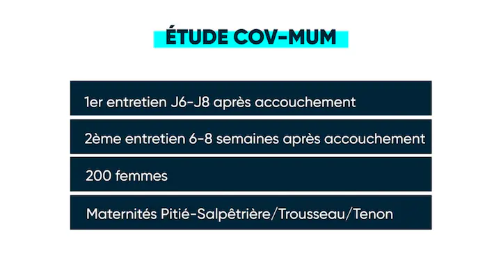 Plusieurs études sont en cours pour évaluer l’impact du confinement sur le post-partum. En France, par exemple, l’étude Cov-Mum. Pendant le 1er confinement, deux entretiens ont été menés auprès de 200 femmes, dans 3 maternités à Paris, après l’accouchement. Ces entretiens mettent en évidence que les troubles anxieux et dépressifs du post-partum ont presque doublé. Les résultats définitifs de cette étude seront disponibles en décembre.