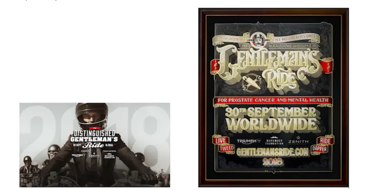 Ils organisent aussi un événement annuel, le "Distinguished Gentlemen’s Ride", ou "promenade des gentlemen distingués". Un samedi de septembre, tout autour du monde, des rassemblements de vieilles motos, c’est aussi ouvert aux voitures, dont les conducteurs sont encouragés à bien s’habiller, en parfaits gentlemen, pour rouler ensemble, promouvoir la santé des hommes, et bien sûr collecter des fonds pour renforcer encore cette prévention.