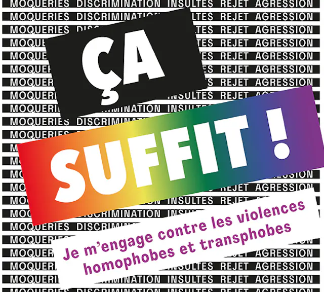 "Ca suffit !", peut-on lire sur les posters et "flyers" qui sont distribués dans tous les établissements du second degré depuis lundi 28 janvier. Les lettres noires et couleur arc-en-ciel barrent différentes formes de discriminations inscrites en arrière-plan. Avec un slogan: "tous égaux, tous alliés".