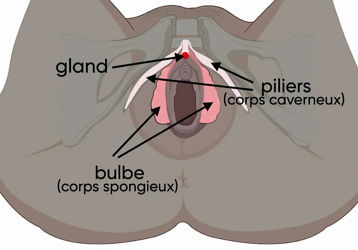 Quand une femme éprouve un plaisir certain, les sensations sont dues à un petit gland érectile car oui messieurs, les femmes en possèdent un : c'est le fameux clitoris qui forme une sorte d'arche. Il est pourvu de branches renfermant des corps caverneux et des bulbes qui entourent le vagin. Toute cette zone contient de très nombreuses fibres nerveuses, d'où sa sensibilité. Lors de la pénétration, le pénis stimule, via la paroi vaginale, le corps caverneux et le bulbe du clitoris. Cela peut aussi être stimulé manuellement bien sûr.