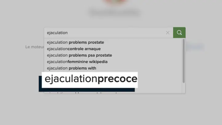 Lorsqu'on fait une recherche sur Internet avec le mot éjaculation, on tombe sur "problème prostate", "contrôle arnaque", "psa", "féminine", "précoce"…l’éjaculation précoce génère plus de 12 millions de résultats. Désormais, on parle plutôt "d’éjaculation prématurée".