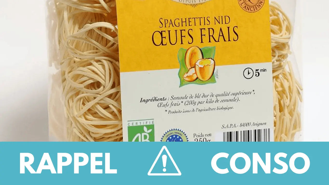 - SPAGHETTI NIDS AUX OEUFS BIO 250GR, de la marque LAZZZARETTI, commercialisés dans les enseignes LA VIE CLAIRE de France entière du 05/08/2025 au 01/09/2025. Il s’agit du lot 3267460030238 2521705 Date de durabilité minimale 05/08/2027.