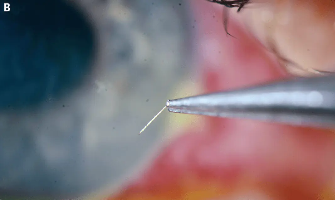 Le dard a finalement pu être retiré de l'oeil du patient grâce à une pince à bijoux